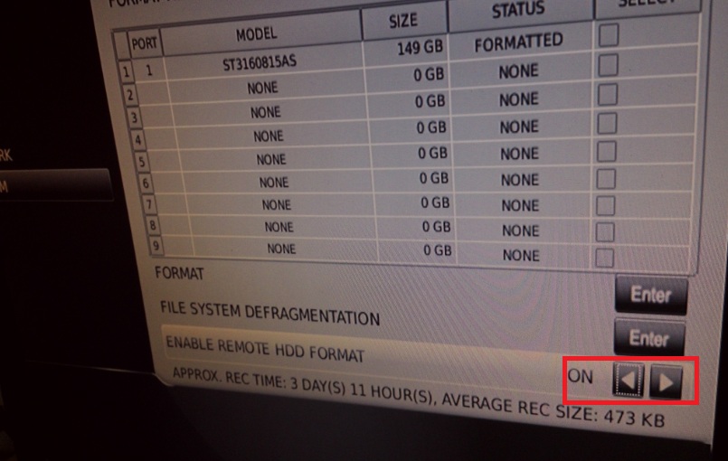 Click the 'Cog' in the top left of the live display, then select 'Setup', within the setup menu select 'System' and scroll down until you see 'HDD Info'. In HDD info you will see 'Enable Remote HDD Format'.