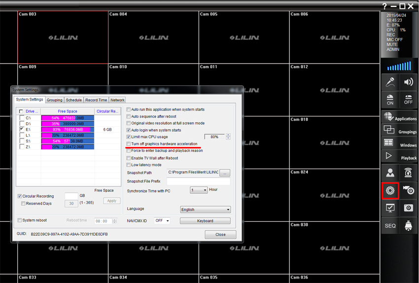 Flashing borders around camera’s in multiscreen view within the LILIN Navigator software