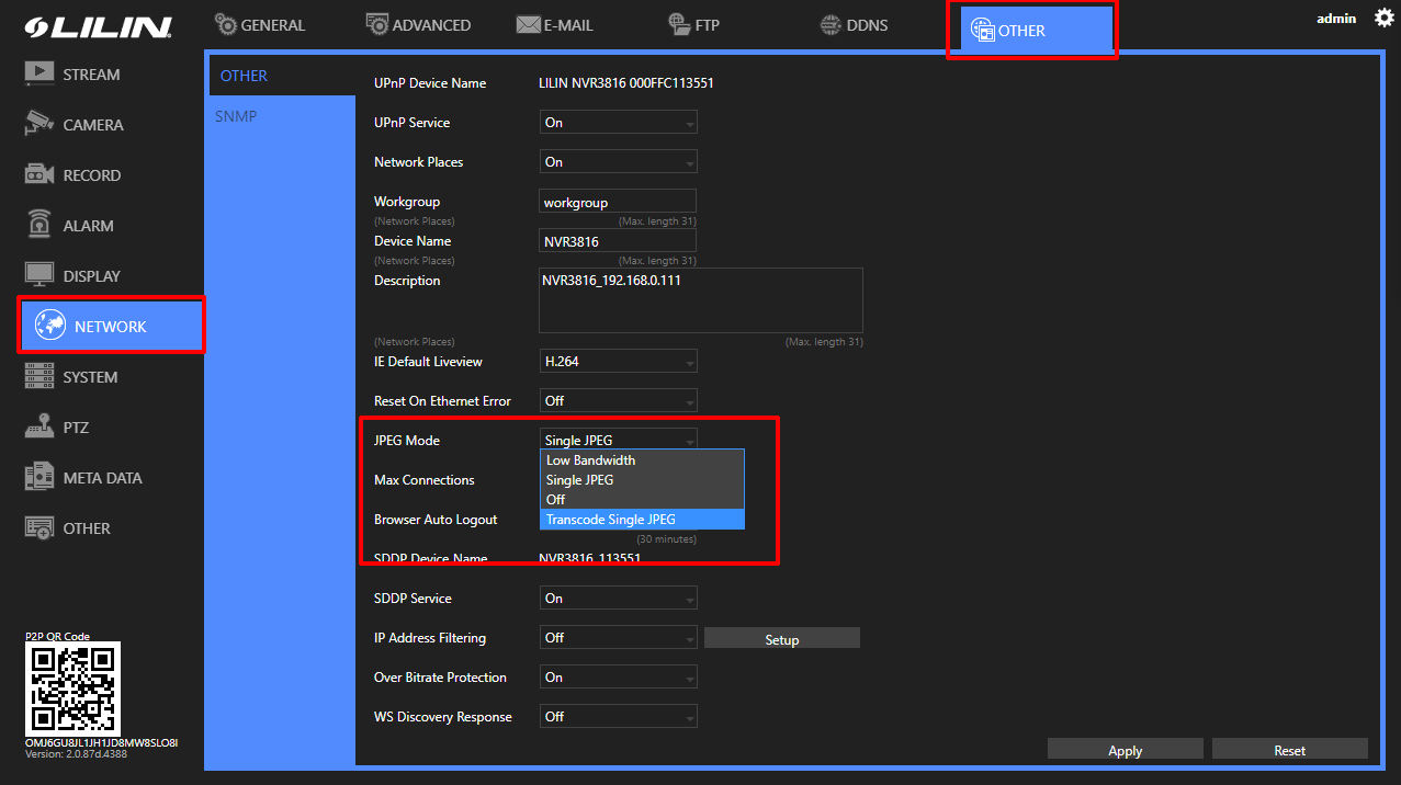 Enabling JPEG transcoding will allow the NVR to create the required JPEG stream and feed this stream to the LILIN Mobile app.