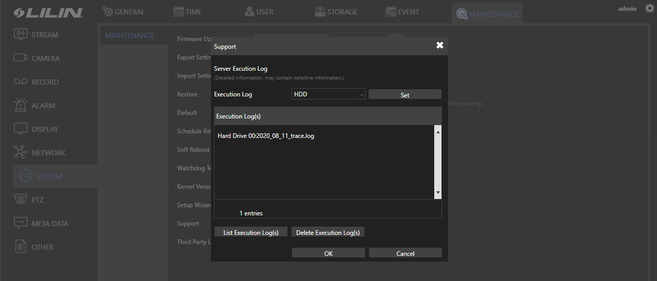 5) Email or attach a copy of the downloaded logs to your technical support ticket and your LILIN representative will receive these for analysis.